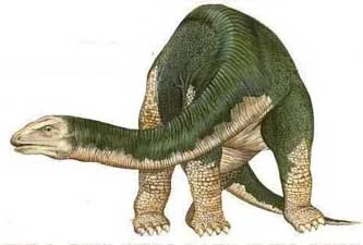 Othniel Marsh y Edward Cope describieron los huesos de un gigantesco dinosaurio al que llamaron Brontosaurus, durante la famosa Guerra de los Huesos, en la década de 1870 (según se comenta aquí). El animal medía 20 metros de largo desde el hocico a la cola, más que dos autobuses en fila. Probablemente comía media tonelada de vegetación cada dia. Marsh había encontrado los huesos de otro dinosaurio enorme, al que llamó Apatosaurus, que significa reptil engañoso. Los expertos comprobaron más tarde que el Apatosaurus y el Brontosaurus eran en realidad el mismo dinosaurio, y decidieron llamarlo Apatosaurus. Así, aunque el Brontosaurus fuera muy famoso, este dinosaurio nunca existió.