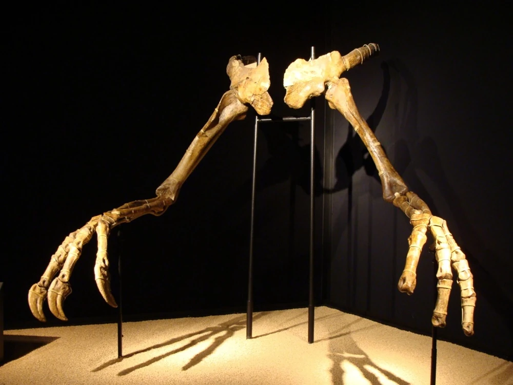 Deinocheirus (gr. "mano terrible") es ungénero representado por una únicaespecie de dinosaurio ornitomimídoornitomimosauriano, que vivió a finales del período Cretácico, hace aproximadamente 83 a 65 millones de años, entre el Campaniano y elMastrichtiano, en lo que hoy esAsia. Deinocheirus poseía enormes miembros delanteros de 2,4 metros cada uno, con garras de 25 centímetros. Los científicos creen que podía haber sido el mayor carnívoro de su época ya que podría haber llegado a medir entre 8 y 20 metros, pero aún se esperan datos de la exhumación para confirmarlo; es posible que, comparando con los ornitomimosaurios, midiera algo más de 12 metros. Aparte de lo miembros superiores se conocen algunas costillas y vértebras.