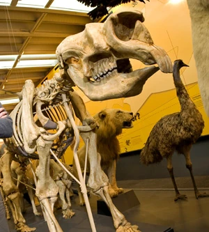 Diprotodon: El Diprotodon es el mayor marsupial que ha existido nunca, pues tanía 2 m de alto y 3 de largo. Era un animal desgarbado, de huesos pesados y gruesas extremidades, era bastante lento, pero con su tamaño ningún León marsupial osaría atacartlo, pero algún Megalania de grandes dimensiones podría vencerlo. Se desplazaba en grandes rebaños en búsqueda de alimento. A pesar de tener unas fuertes mandíbulas y un cráneo enorme, tenía el cerebro de un tamaño muy reducido. Tenía los típicos molares de un herbívoro y unos grandes incisivos para arrancar la vegetación.