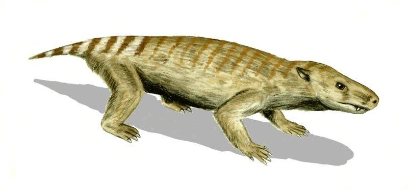 schnauzer miniatura y también era un cazador capaz. Los pequeños agujeros del hocico de los fósiles del cráneo de esta criatura hacen suponer a los especialistas que este animal tenía vibrisas (bigotes) y, por tanto, que probablemente estaba cubierto de pelo. Ello lleva a estos especialistas a proponer que el animal era endotermo, esto es, de sangre caliente. Las aberturas de sus oídos le daban la gran capacidad de oír, y podía detectar una presa escondida solo por el ruido que hacía. Es de gran importancia pues posiblemente sea el protomamífero superviviente de la mayor catástrofe para la vida en la tierra que tuvo lugar al final del pérmico, y del que acabaría descendiendo toda la clase mammalia.Los primeros fósiles de Thrinaxodon fueron hallados en África, pero más tarde también se encontraron en la Antártida. Esto ayudó a los científicos a darse cuenta que los dos continentes estuvieron juntos para este periodo.Esta criatura se extinguió poco después de que los primeros dinosaurios apareciesen.